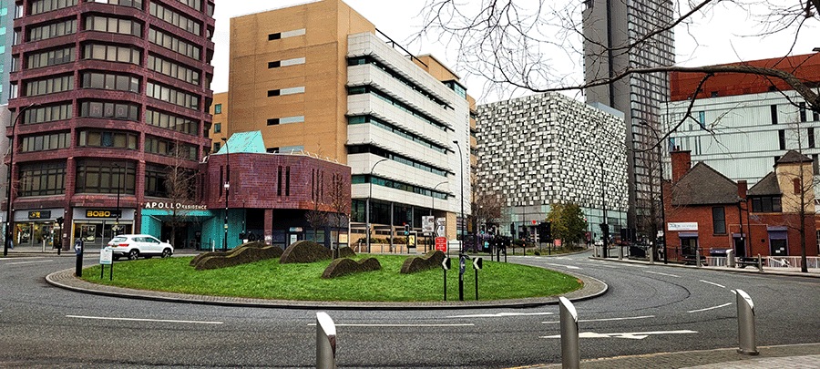 I was in and out of Sheffield quickly, and so barely got to see the town. The real highlight for me was that friends-verging-on-family Gary and Karen from Edinburgh were driving down to Somerset, and we got together for a few beers. Bizarchitecture in Sheffield: