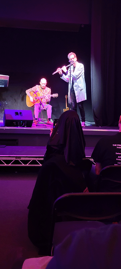 Steve, and Deaf School wind-and-reed man Ian Ritchie, performing Steve's solo single "Mr. Average":