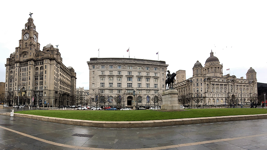 From the ferry cross the Mersey. The view of the Cunard is now marred by the ferry building itself. Shameful.