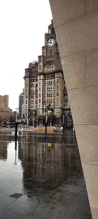 Two shots of Liverpool's Three Graces. The middle building is the Cunard, where Max performed: